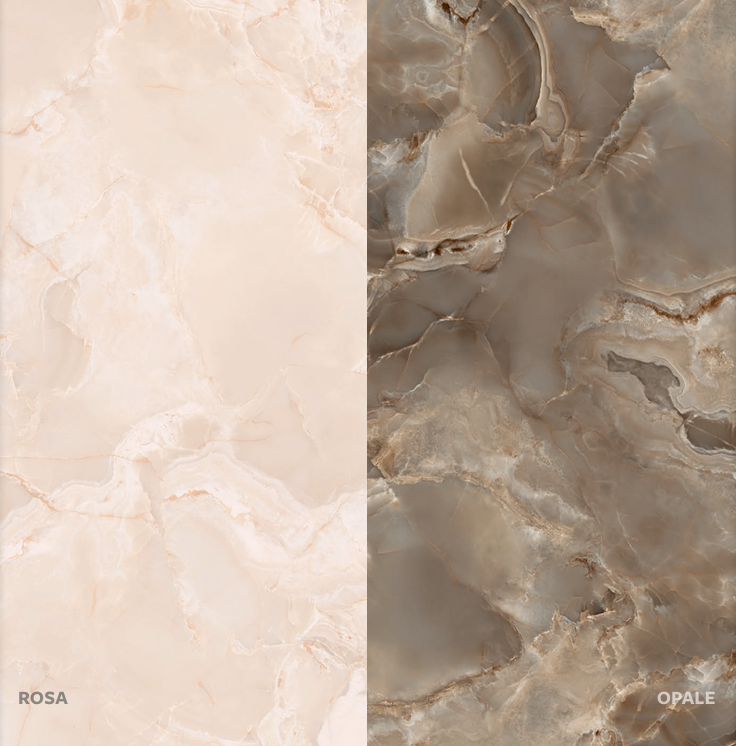 de couleur, du gris au blanc, du vert au brun. La collection, disponible en 7 variantes de couleurs, est enrichie par la très haute valeur de brillance due l’utilisation de grenailles, et ultérieurement valorisée par une large gamme de tailles, dont le 120x280 cm et le spectaculaire 160x320 cm